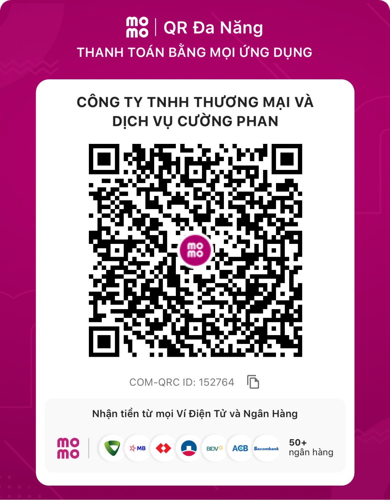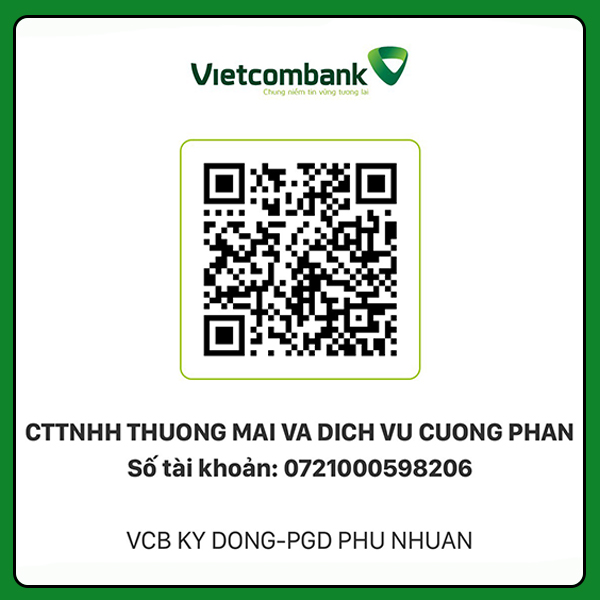 Tài khoản Công ty: Công Ty TNHH Thương Mại Và Dịch Vụ Cường Phan (Tài khoản Công ty dùng chung cho tất cả các chi nhánh, bắt buộc với đơn hàng giá trị từ 20 triệu trở lên)