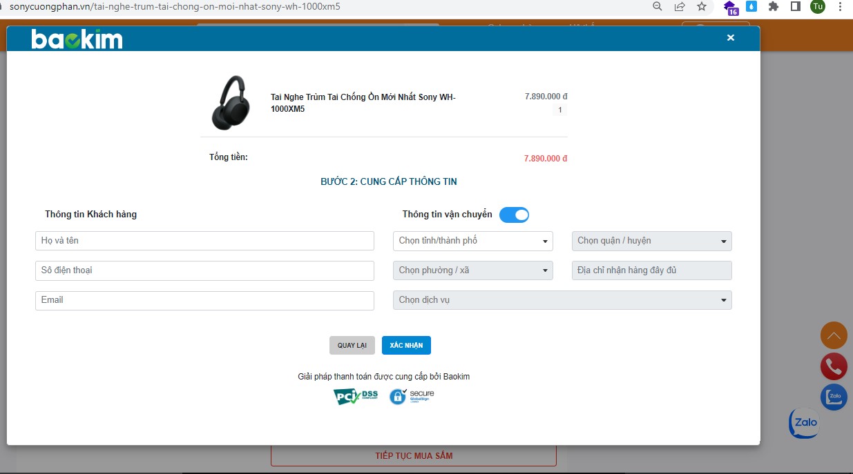 Các giao dịch này an toàn, bảo mật và nhanh chóng qua cổng thanh toán Baokim.vn.