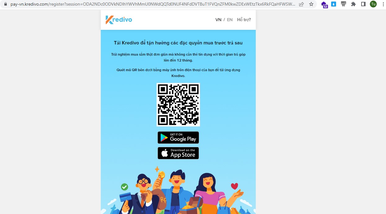 Chưa có tài khoản Kredivo: Khách hàng tải app và đăng ký