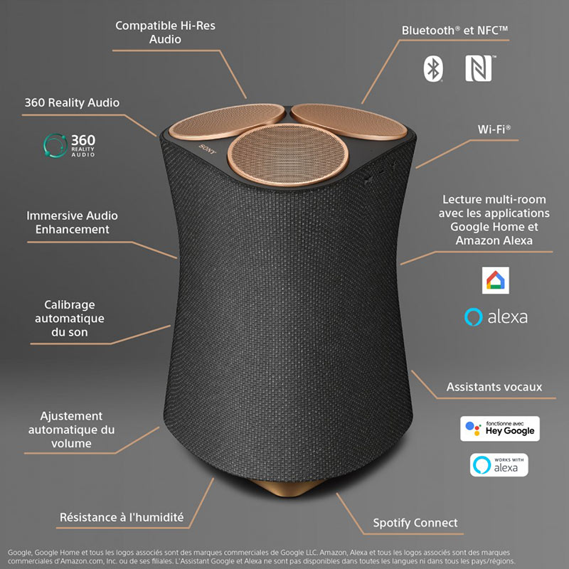 - Kết nối không dây: Bluetooth, Wifi, Spotify Connect, Chromecast, NFC