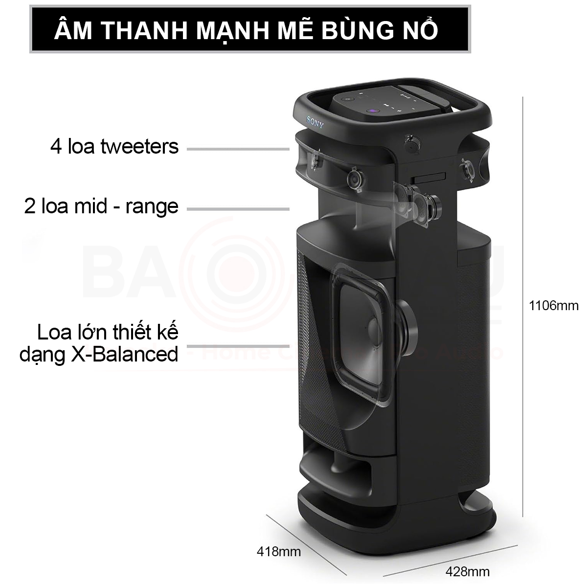 - Loa trầm có kích thước lên tới 32cm cho âm trầm rõ ràng.