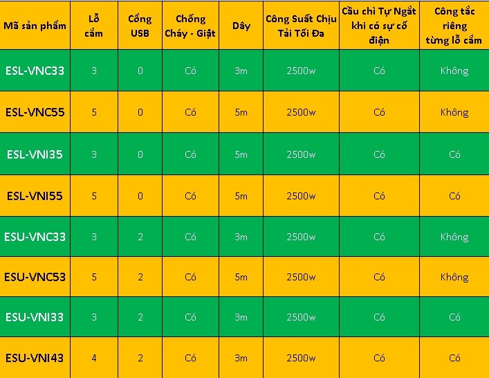 - Cổng sạc USB : ( tương ứng từng sản phẩm - vui lòng xem bảng bên trên )