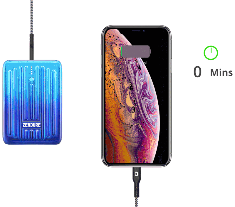Với 18W Power Delivery, Zendure SuperMini có thể sạc nhanh iPhone X của bạn lên tới 50% trong vòng 30 phút (khi sử dụng dây cáp USB-C to Lightning) Pin sạc dự phòng Zendure SuperMini còn có hỗ trợ sạc nhanh đầu vào USB-C (PD) ở đầu vào nên cục sạc này có thể sạc lại đầy khá nhanh, trong vòng khoảng 3h.