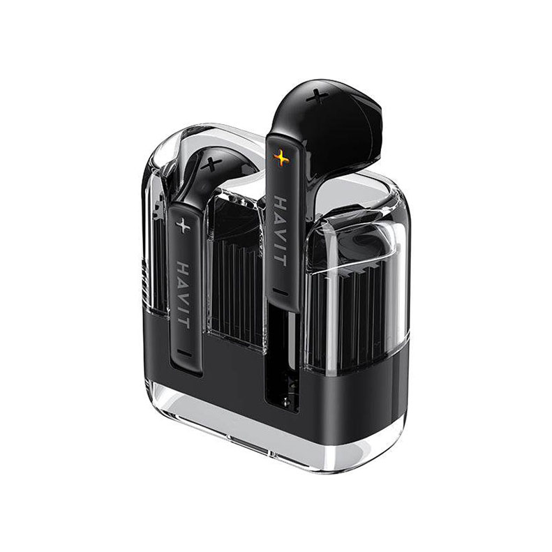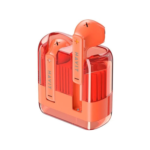 Tai nghe bluetooth Havit TW981 sở hữu thiết kế trong suốt độc đáo cùng driver 13mm mang lại âm thanh chất lượng cao. Tai nghe với 3 lựa chọn màu sắc cho người dùng là đen, trắng và cam cùng thiết kế gọn nhẹ, dễ dàng mang theo.
