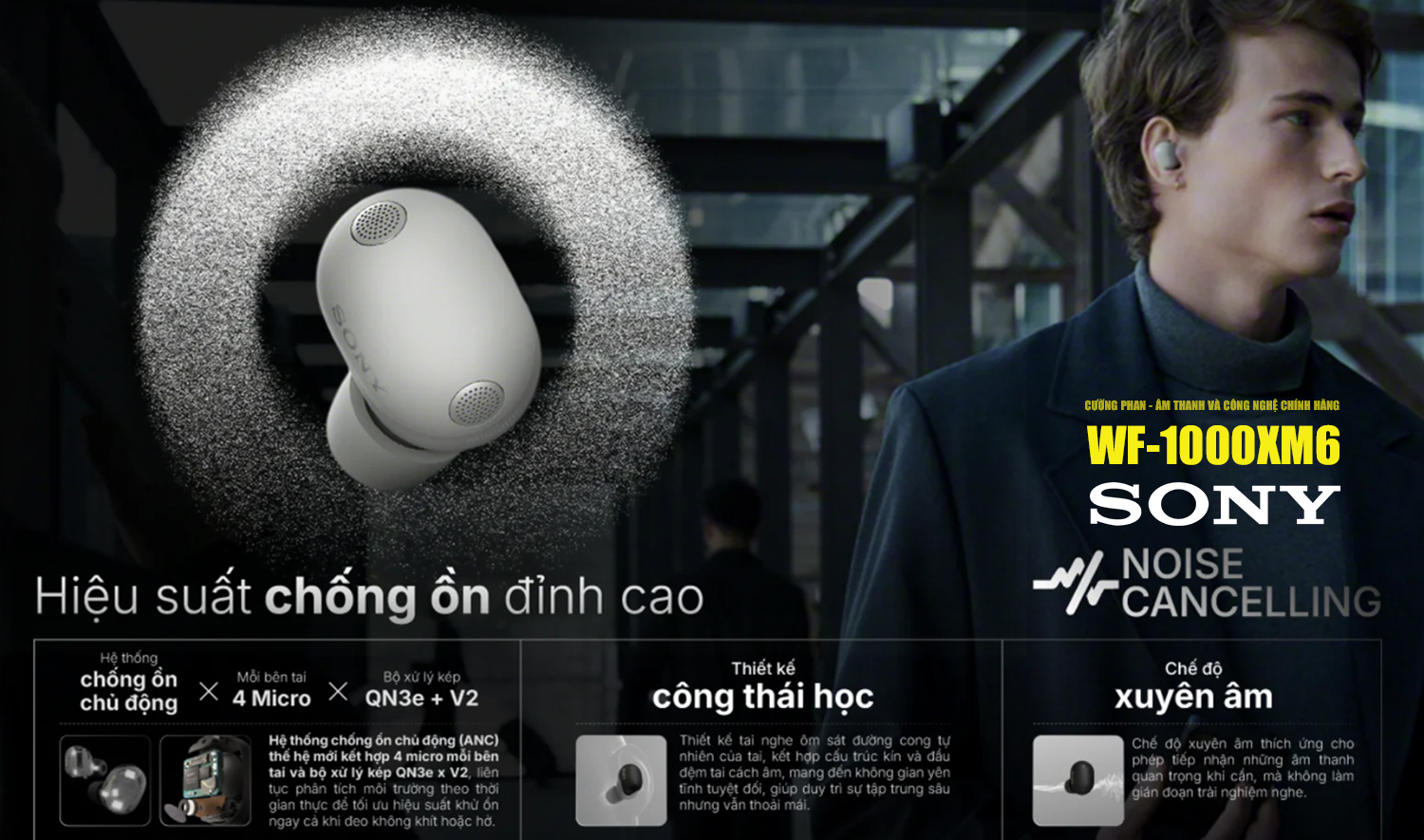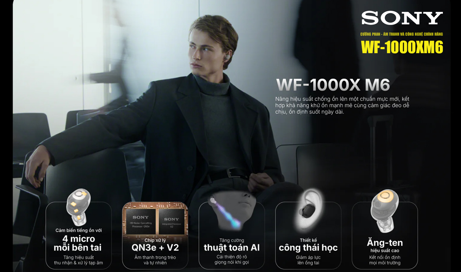 - WF-1000XM6 có hiệu suất chống ồn cao hơn 25% so với WF-1000XM5