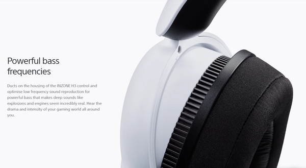 Các ống trên vỏ Tai nghe Sony INZONE H3 (MDR-G300) kiểm soát và tối ưu hóa khả năng tái tạo âm thanh tần số thấp cho ra âm trầm mạnh mẽ, mang lại âm thanh sâu vô cùng chân thực như tiếng nổ và tiếng động cơ. Đắm chìm vào thế giới game với âm thanh kịch tính và mạnh mẽ.