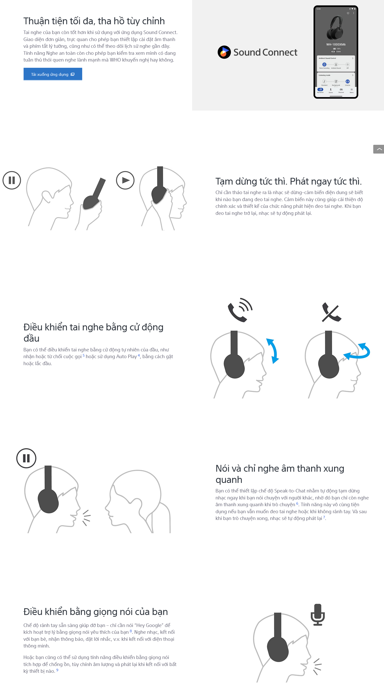 Bạn có thể điều khiển tai nghe bằng cử động tự nhiên của đầu, như nhận hoặc từ chối cuộc gọi hoặc sử dụng Auto Play, bằng cách gật hoặc lắc đầu.