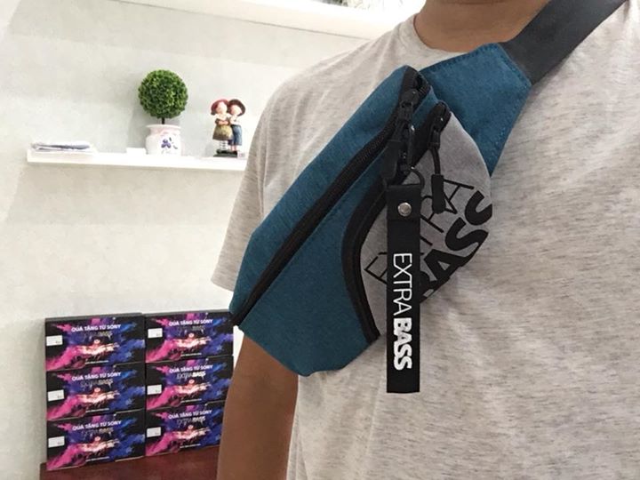 Túi chéo Sony Extra Bass có kích thước nhỏ gọn, phù hợp đựng phụ kiện, tai nghe nhét tai và nhiều vật dụng khác. Túi thiết kế dạng túi bao tử với dây dù chắc chắn an toàn.